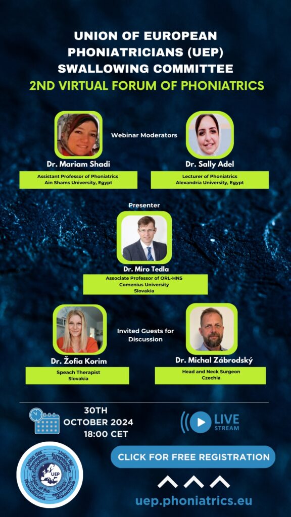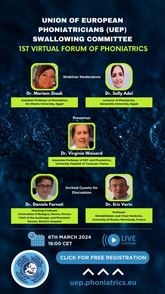 UEP Swallowing Commitee 1st Virtual Forum of Phoniatrics – 6th March 2024 ← Back to Webinars UEP Swallowing Commitee 1st Virtual Forum of Phoniatrics – 6th March 2024