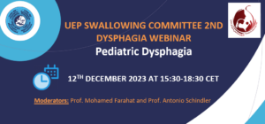 « All Events This event has passed. 2nd Dysphagia Webinar: Pediatric Dysphagia December 12, 2023 @ 15:30 - 18:30 CET « IODA 2023 – The 2ND International Otology Disorders Academy Congress Winter Laryngology Course on Laryngeal Dystonia » https://www.eventbrite.com/e/uep-swallowing-committee-2nd-webinar-pediatric-dysphagia-tickets-753791188737?aff=oddtdtcreator Add to calendar Google Calendar iCalendar Outlook 365 Outlook Live Details Date: December 12, 2023 Time: 15:30 - 18:30 CET Event Category: UEP Events Organiser UEP - Union of European Phoniatricians Email uep-office@phoniatrics.eu View Organiser Website